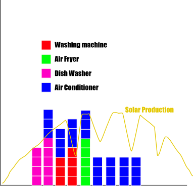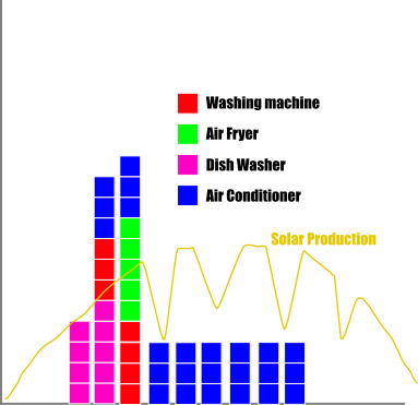 Maximize your own solar without importing power will require you to run one machine at a time in order to reduce power being imported from the grid and costing you money. Using this method will only import the minimum amount of power from the grid, approximately covering 70%-90% of your loads in summer.Turn one appliance on at a time with timers built into the appliance.